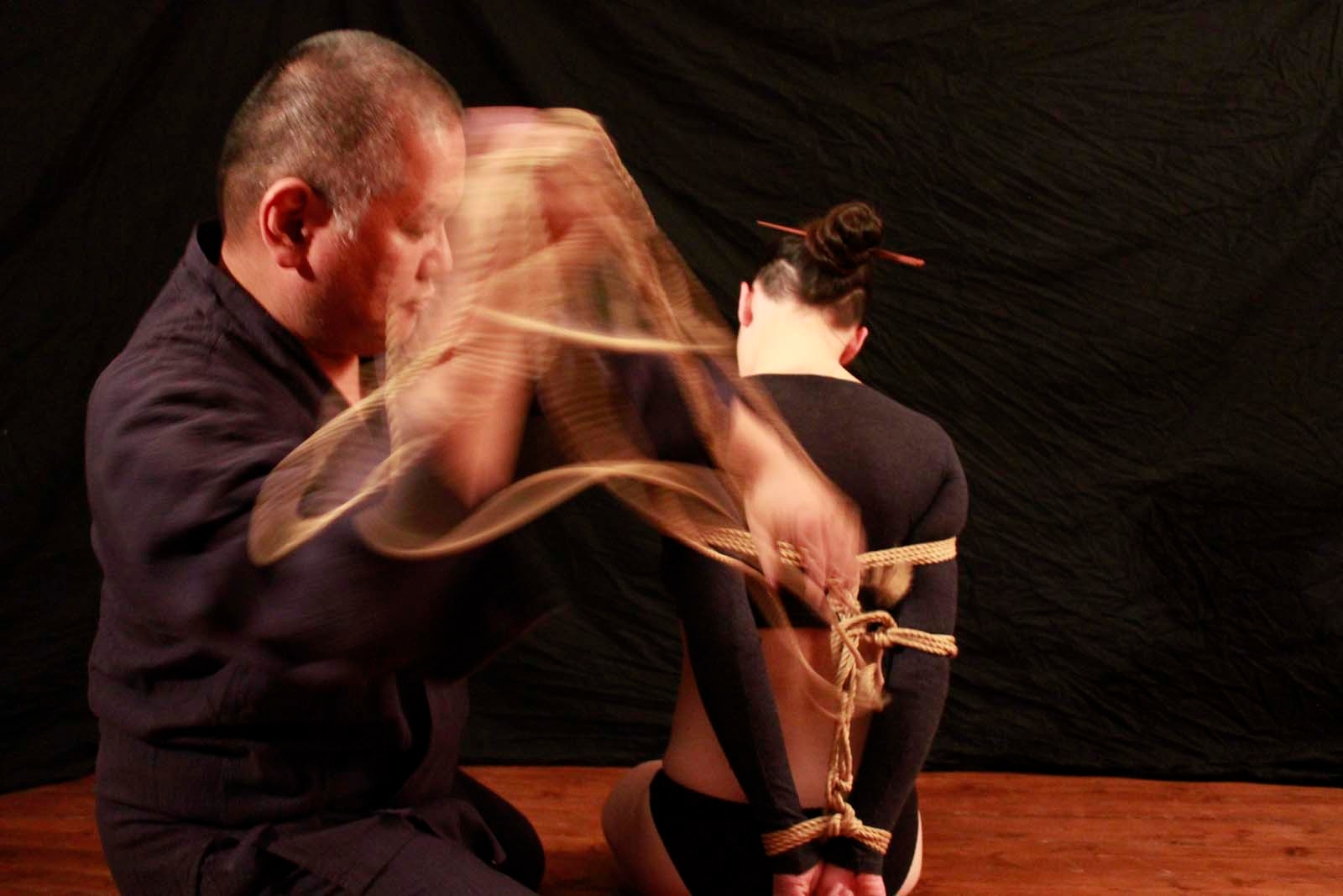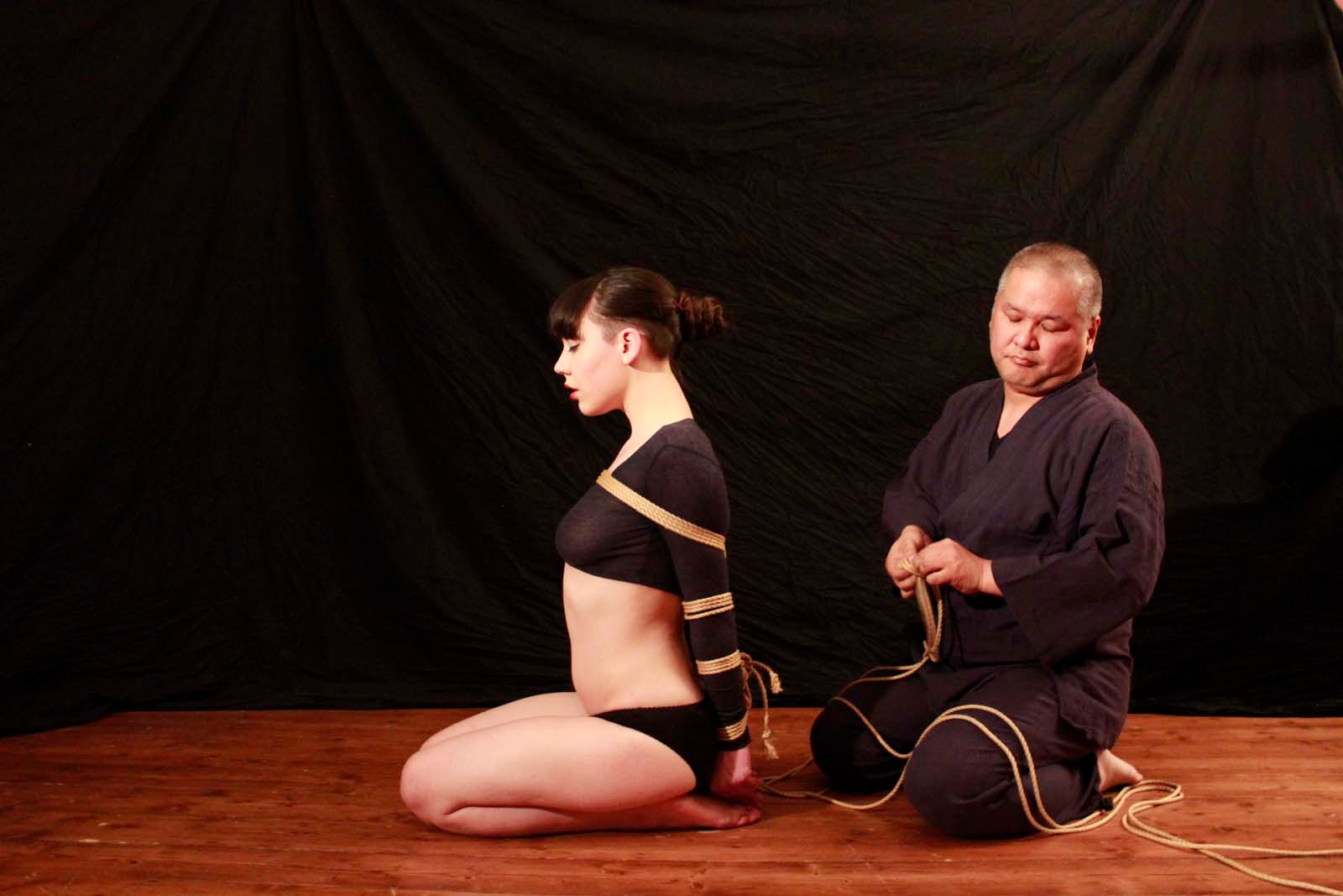 We were honoured by another private shoot with Kazami-san and Gestalta while they were staying with me recently to run his course here. I’m afraid we didn’t do a very good job with the lighting but hopefully when you see what he does with Gestalta, you will forget about any technical deficiencies in that area. Using very familiar points for his suspensions, he makes the positions superbly elegant with a few fine adjustments of his own. One has to admire Gestalta’s stoicism and professionalism, or maybe just her sheer masochism, as she manages to look stunning when put through some tough ties, even after a 5-day course being tied all day and 5 shows!